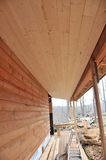 Picked up the cherry lumber from the mill today and ended up with 239 bf out of the logs that were given to me. I took all the boards directly to the kiln mill to dry and plane. It's amazing how cheap all of this milling is, and my cherry graded out at #1 stuff. The goal for the week is to get all of the cedar post up with the exception of the 2 massive ones in front, get all of the railing done, and do alot of little things on the exterior to get ready for the rock. I kinda got a lot of my running around done last week, so I hope to concentrate on construction this week. I need to completely finish the outside so I can move inside and get this puppy done. Around 10 days of work is left on the outside, excluding the rockwork. My best guess is 2 to 3 months on the interior, but I would love to be done by the end of april. Took a hike into Hide Out Hollow on sunday with brother Scott and his buddy Jim and all our boys, we had a blast and it was quite the adventure for all of us. It is so cool to have another awesome place to hike within 5 miles of the house. Hopefully we can do a couple more hikes this winter, it feels so good getting out some, and this is what we moved here for. Meanwhile, the spring rolls that Nick cooked for me on saturday were incredible and we had another great meal at the Low Gap Cafe. I also confirmed to play a gig there on sat. feb. 18th. Hope some folks come out and join us. Have an awesome week. Hollohead
